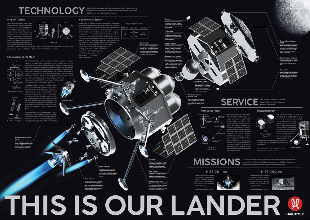 ispace, inc. (ispace) – приватна компанія з дослідження Місяця, амбіційною ціллю якої є розширення присутності людини в космосі. Компанія налічує 100 співробітників з 13 різних країн, працює в Японії (головний офіс), США та Європі й підписала угоди про партнерство з Японською агенцією аерокосмічних досліджень (JAXA) та урядом Люксембурга. Компанія ispace залучила майже 95 мільйонів доларів США у фінансування серії А – найбільше за всю історію Японії та більше, ніж будь-яка інша космічна компанія в історії. ispace також керувала командою HAKUTO, однією з 5-ти фіналістів конкурсу Google Lunar XPRIZE.