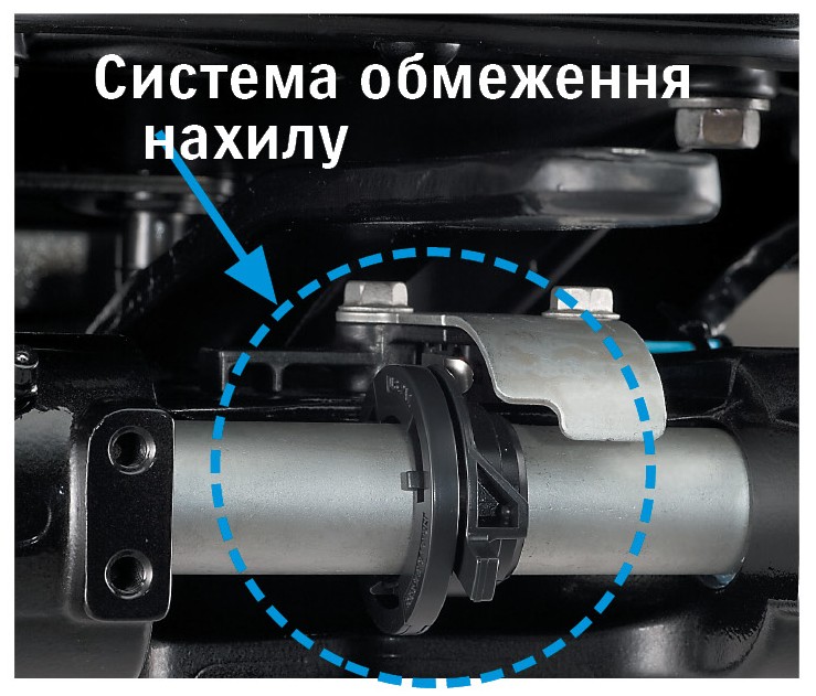 Щоб захистити човен від пошкоджень, які можуть виникнути під час нахилу підвісного мотора, на обох підвісних моторах передбачено обмежувач кута нахилу з ручним регулюванням, який не дозволяє підвісному мотору нахилятися поза встановлену межу.