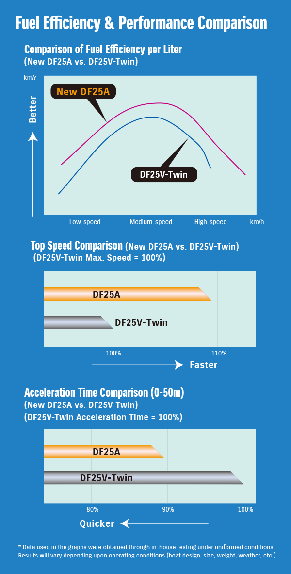 Оснащені цілою низкою найкращих технологій Suzuki, DF25A/30A є найлегшими підвісними човновими моторами на ринку в класі чотиритактних підвісних моторів потужністю 18.4кВт (25к.с.)/22.1кВт (30к.с.). *4