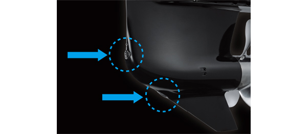 Система двох гребних гвинтів Suzuki забезпечує взаємно протилежне обертання двох гребних гвинтів на одному моторі.